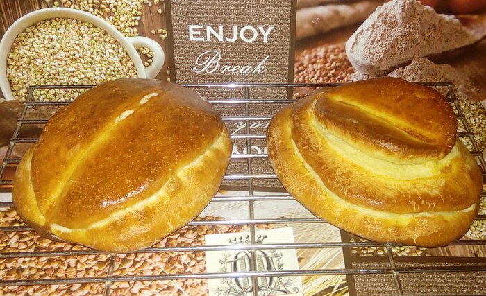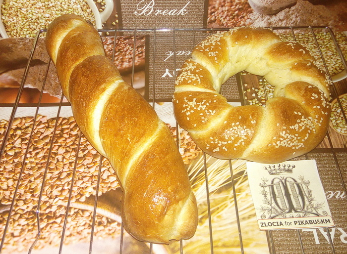 На верхнем фото вы видите булку витую и кольцо, только не с маком, а с кунжутом.