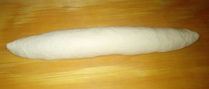 Наше тесто раскатываем в колбаску и делим пополам/пополам/пополам. Получится восемь кусочков. Каждый кусочек подкатываем в шарик, все накрываем полотенцем и даем постоять минут 10.