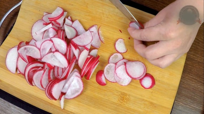 Не забывайте о пищевой безопасности! Ту сторону разделочной доски, на которой режете мясо/птицу не используйте для нарезки овощей/фруктов для салатов. Особенно деревянную. Нет никакой гарантии, что бактерии из мяса не "поселятся" внутри глубоких царапин, и потом "переползут" на свежие овощи. Для мяса одна сторона, для овощей другая.