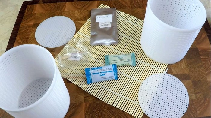 Растворите хлористый кальций в 50 мл теплой воды, в отдельной посуде растворите сычужный фермент в 50 мл воды.