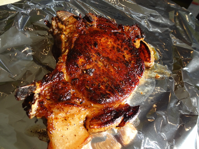 Выпекаем при максимуме минут 15 и затем убираем колпак и снизив температуру до 210-200 градусов допекаем еще минут 30 до готовности.