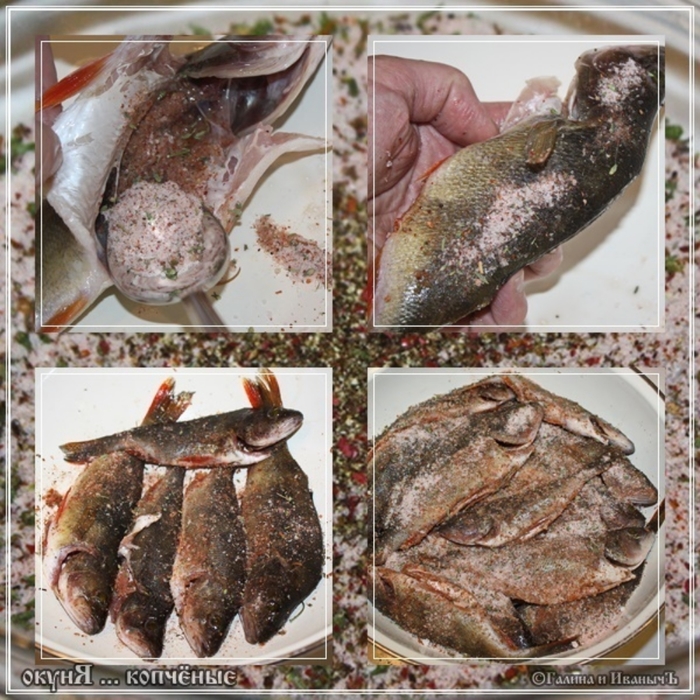 Понемногу смеси (тут рассчитывайте по размеру тушки) смеси засолочной вовнутрь положите и разотрите ее по организму рыбкиному. Сверху смесь надо растереть, втирая ее под чешую. И складываем окуньков в подходящую тару. Ну и между слоями смесью припорошите.