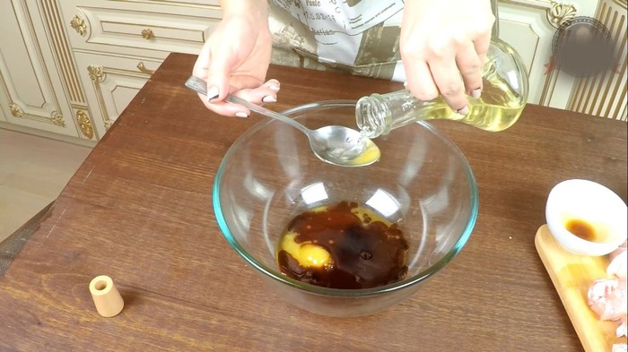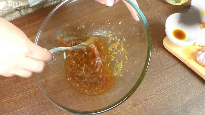 • В миске смешать мед, соевый соус, растительное масло, имбирь и чеснок. Хорошо перемешать ложкой.