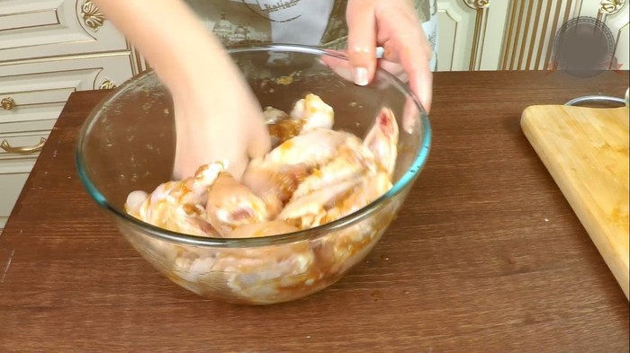 • Куриные крылья промыть и промокнуть бумажным полотенцем.
