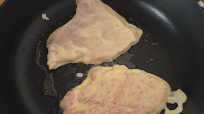 Теперь самое время пережарить куриную грудку. Обжариваем с обеих сторон до готовности, в небольшом количестве масла.
