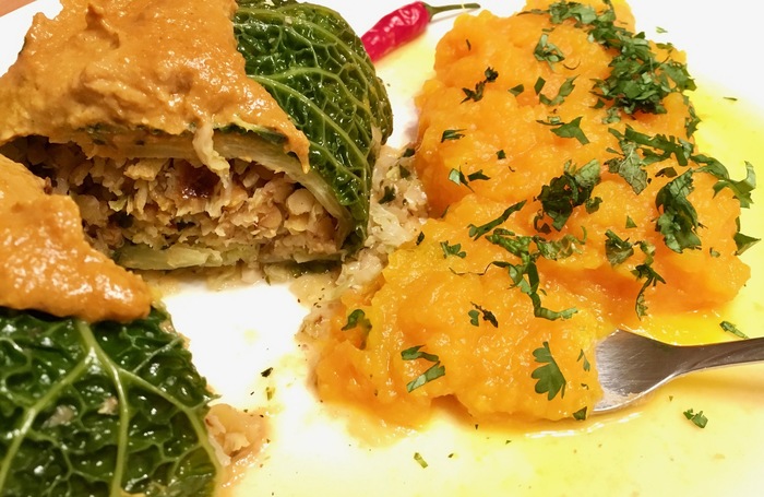 Начинка подойдет любая капуста, картофель, яблоки. Я предлагаю сегодня из свеклы. 2 отварных свеклы натрем на крупной терке. Отжимаем слегка сок. Изюм и сушенную клюкву замочим и измельчим ножом или слегка прокрутим блендером. Добавляем к свекле и перемешиваем, начинка готова.