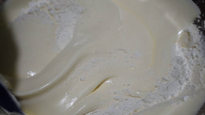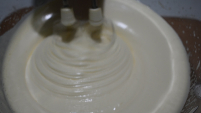 Манная каша уже остыла до комнатной температуры. Взбиваем миксером 3-4 минуты. За это время манная каша посветлеет, увеличится в объеме, стал похож на взбитые сливки. На вкус похоже на зефир с вишневым вкусом.