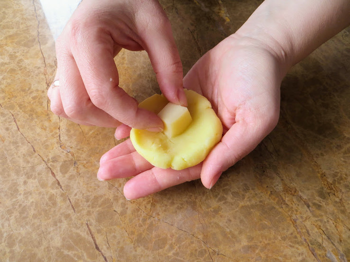 В несколько приемов добавить охлажденный творожный (сливочный, можно взять маскарпоне) сыр, каждый раз взбивая. Я беру самодельный сыр.