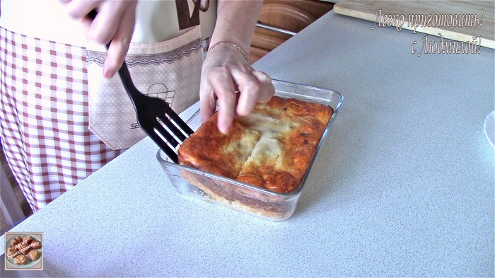 А потом остальной соус выливаем и немного приминаем содержимое, чтобы соус покрыл верхний слой продукта.