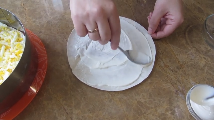 Раскокать получившиеся тесто (примерно 0,5 см)и выложить в форму и сделать небольшие дырочки вилкой.