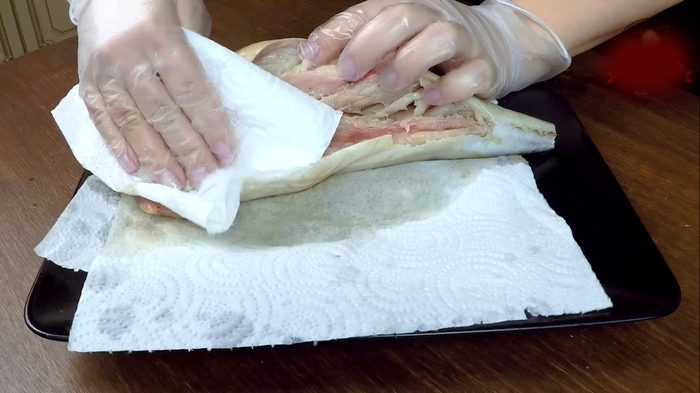 Для начинки к остывшей курице добавляем сметану, яйцо и муку, перемешиваем.