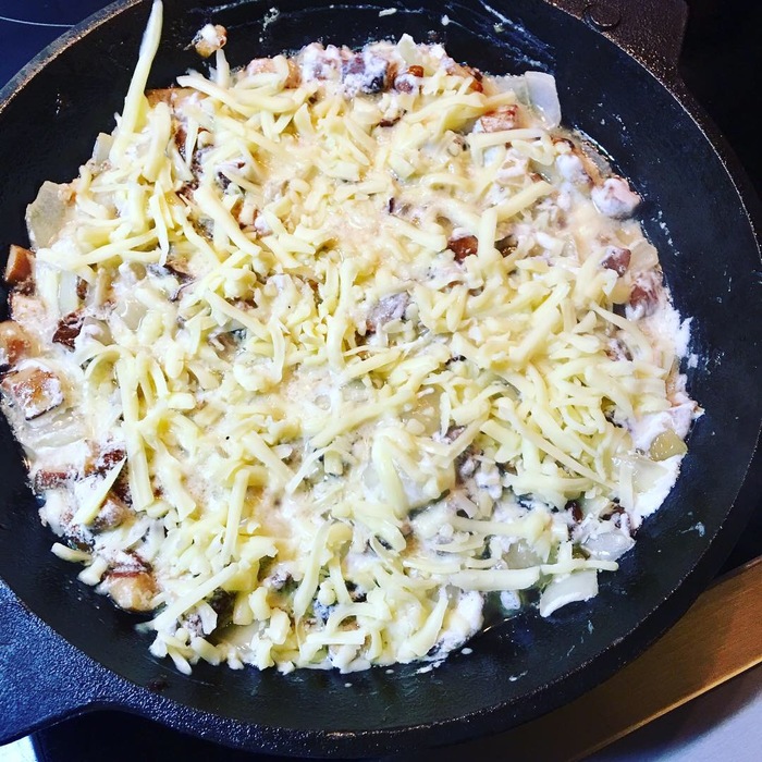 Для заливки взболтать венчиком яйца со сметаной, добавив при желании соль и специи.