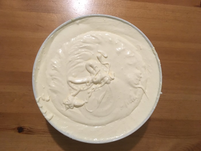 Когда сливки уже загустели, добавляем сахарную пудру. Взбиваем до устойчивых пиков.