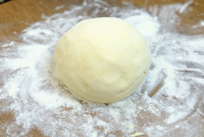 2. Вымесить тесто до однородности в течение 2-3 минут, добавляя немного муки при необходимости, собрать в ком.