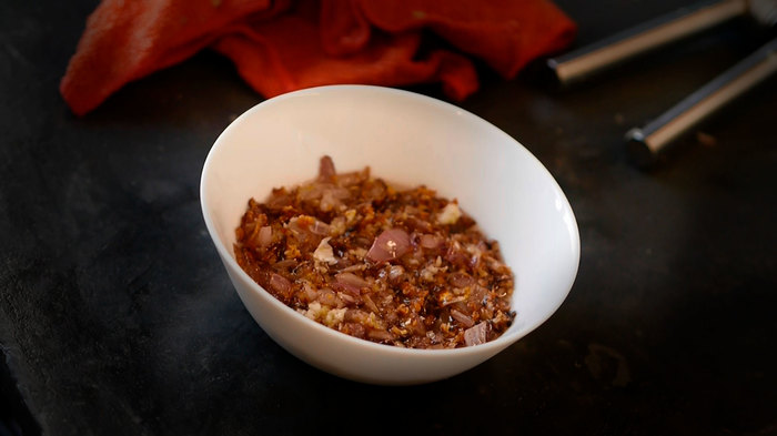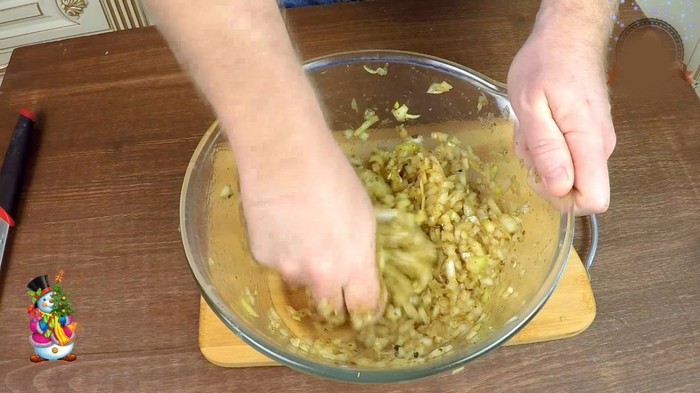 Лук можно чуть-чуть подрумянить, а можно выжарить до черноты. Зависит от того, кладёте ли вы в заправку всё со сковороды, или только масло. Если только масло, то масла подлейте побольше и жарьте лук сильнее. Но я предпочитаю по целому ряду причин, и даже порекомендую вам добавить в качестве заправки всё, а не только масло.