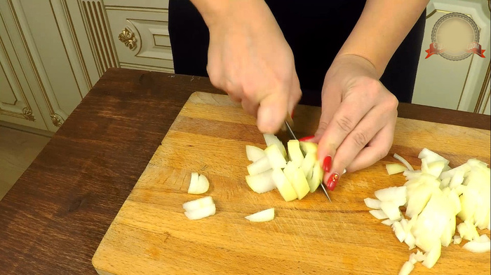 Сегодня мы приготовим азу по-татарски с солеными огурцами в казане. Возьмем мясо, мы используем говяжий антрекот, нарезаем на кусочки. Так же подготовим лук репчатый, его нарежем полукольцами. Разогреваем хорошенько казан и растапливаем половину взятого сливочного масла, обжариваем нарезанное мясо на сильном огне до корочки. Параллельно займемся картофелем, нарезаем его соломкой и ставим обжариваться в отдельной сковороде, но мы к ней еще вернемся.