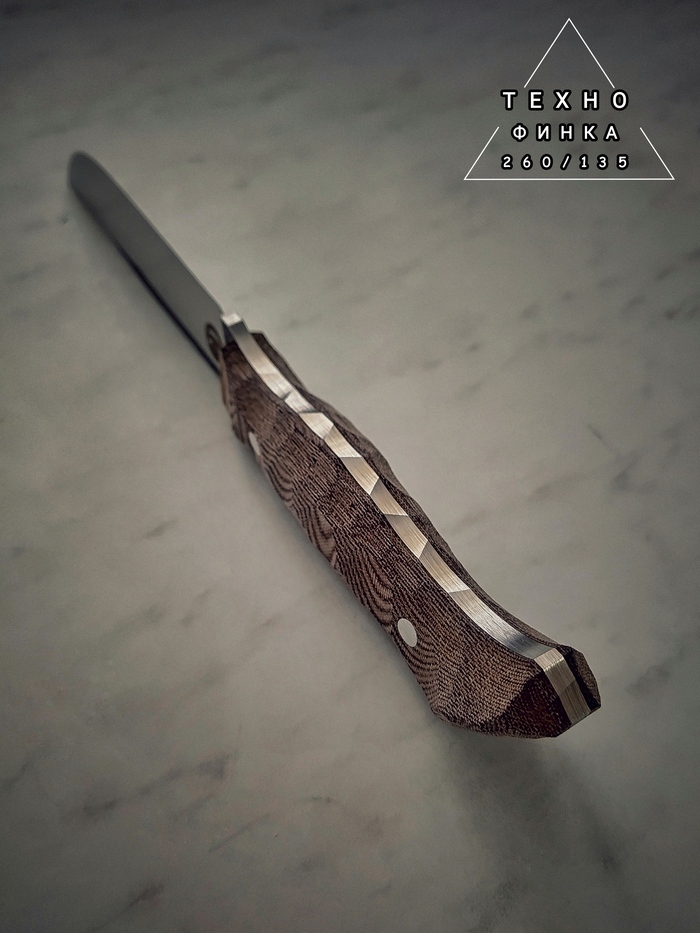 Дальше была финишная обработка. Рукоять сделал из корня ореха, больстер G10, проставки латунь.
