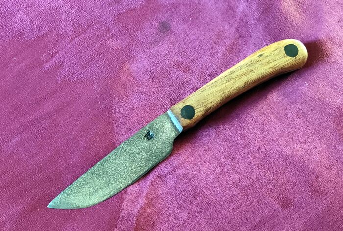 Вскоре Питер получил свой заказ, из популярной для того времени американской инструментальной стали O-1, с рукояткой из микарты и кожаными ножнами. Итоговый результат поразил Мартина настолько, что он умолял и в конечном итоге уговорил того кузнеца научить его основам ручной ковки и создания ножей.