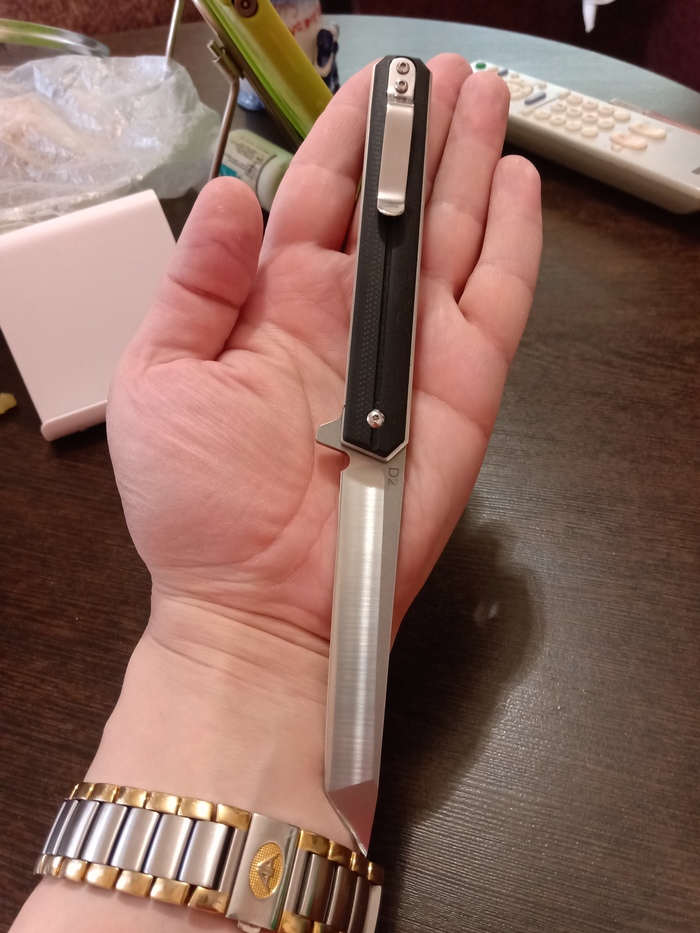 Так вот. Ради эксперимента, приобретен такой же китаец, с клинком американский танто (это просто обрезанный под 45° клинок).