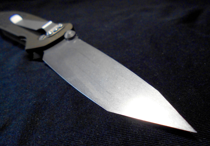 Сталь-ламинат, и он просто огонь. Я хотел зафоткать нож и пытался воткнуть его в пень на земле, но промахнулся и воткнул в камень. На любом другом ноже кончик бы ушел в ночь, а тут лишь маленький замин остался, который я и удалил заточкой, собственно.