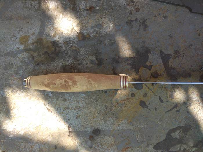 Продавец сказал, что пичак разновидности пастушечий, создан для разделки мяса и рубки костей. И плюс наверное ещё было к тому, что стоил всего 50 юаней, и если на таможнях заберут, будет не так жалко... Вот он миновал таможни,...табуретки я им не рублю, кости по старинке рублю топором, просто сувенир на память о посещении Дабазара в Урумчах.