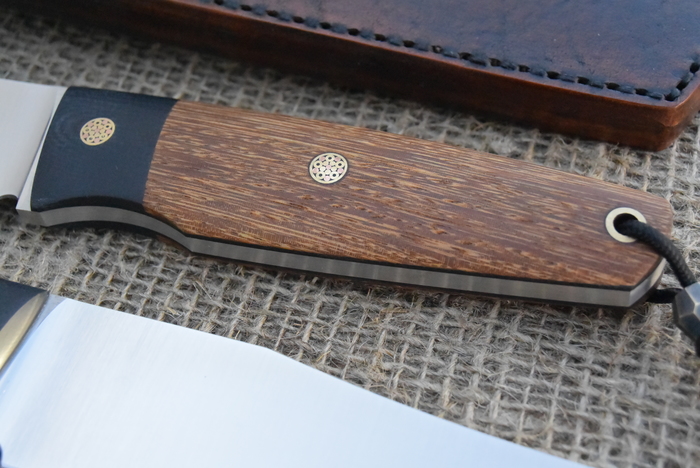 Клинок сделана из супер азотистой стали Vanax37. Почему эта сталь супер? Вначале я был скептичен, так как твёрдость не впечатляет (62HRC, что не сильно много), но как только начал ее обрабатывать... Боже, словно языком гранит точу. Это самая вязкая сталь, что я держал в руках, а я повидал многое. Чем он конкретно хорош? Да всем: режет долго и беспощадно, как орфографические ошибки тонкую душу гуманитария, а выдерживает в разы больше, чем поясница крепкого белоруса в сезон сбора картошки. Но при всем этом, он ещё не ржавеет и долго сохраняет остроту. Vanax37 - это тот самый сын маминой подруги в мире ножевых сталей.