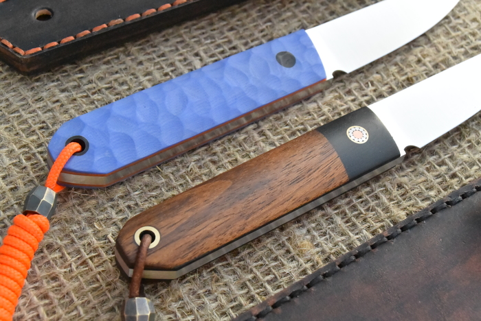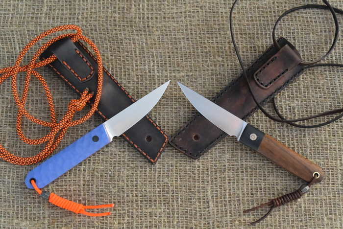 Этих делал из обрезков. Почти 4 мм толщины на ширину всего 18 мм это не совсем режущая геометрия,но всё же режут,как оказалось. Выложил в барахолку,очень интересно было,какой вариант,судя по вопросам, будет больше популярен. Думал с деревом будет более востребован. Оказалось поровну,ушли в первый день на моё удивление.