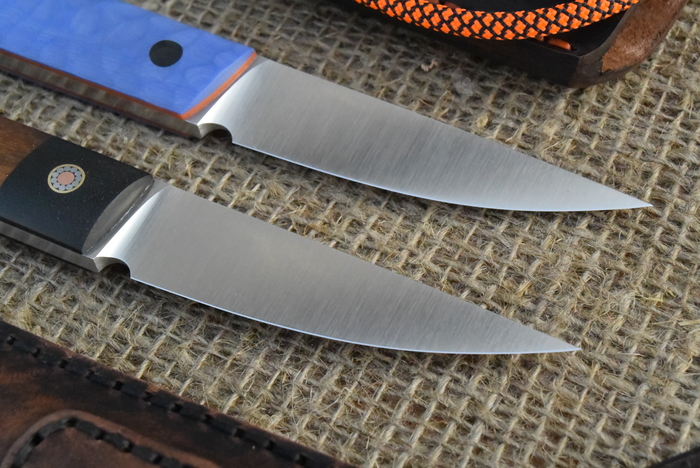 -клинки: 95Х18 ТО Влада Бондаренко с крио тверд.60-61 ед., 75х18х3,8 мм, сведены в 0.3 мм,заточены до P1000,угол около 40 гр.