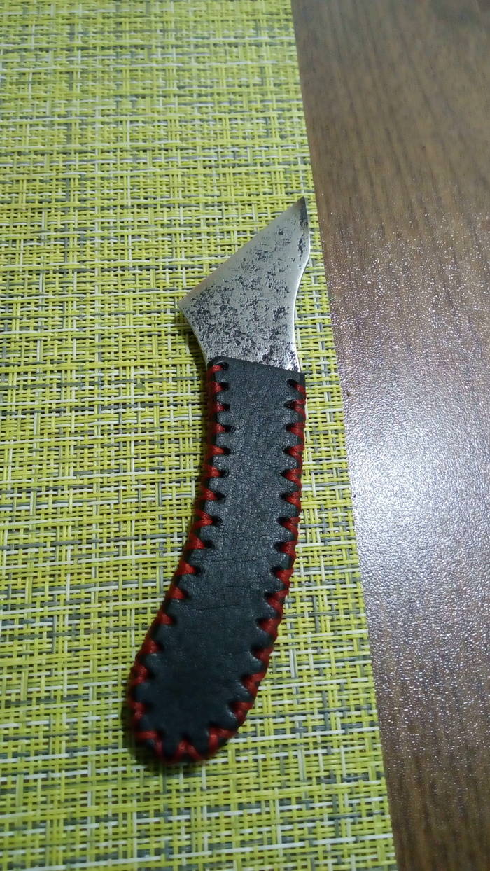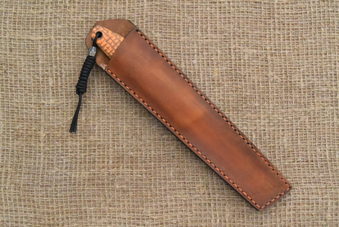 Ножны: телячья кожа, кожа змеи, белый металл, лавсановая нить, пропитаны смесью восков, покрыты шеллаком.