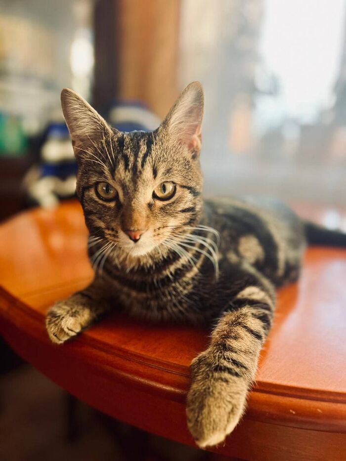 Его история началась с трагедии — он был спасен с улицы еще котенком, после того как его мать разорвали собаки. И его приютила, вылизывала и растила не кто иная, как наша Мила (помните, сердце Банды?). Так что ласке и заботе он научен с пеленок.