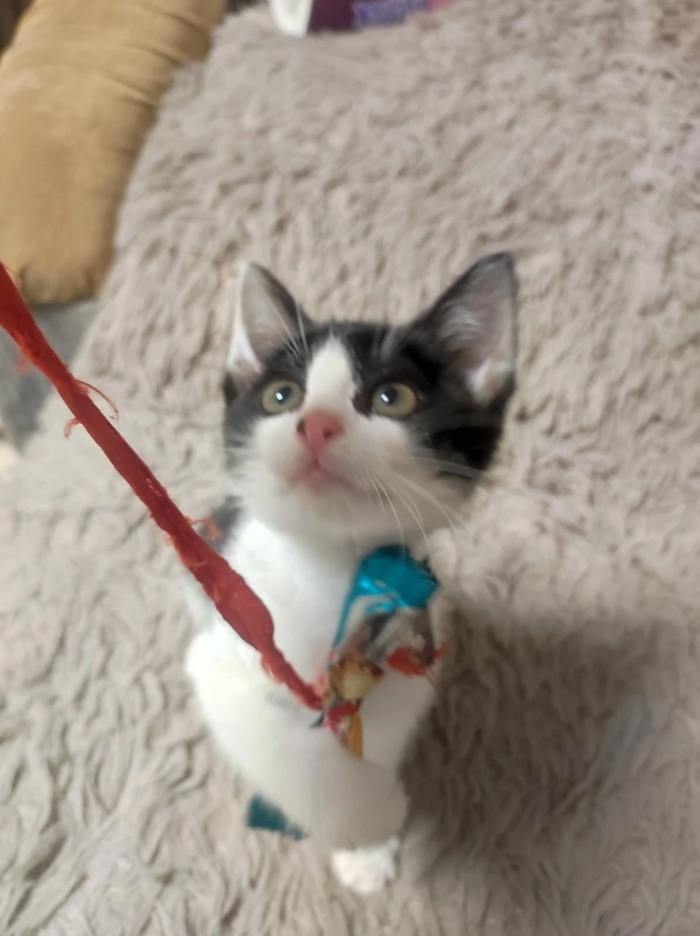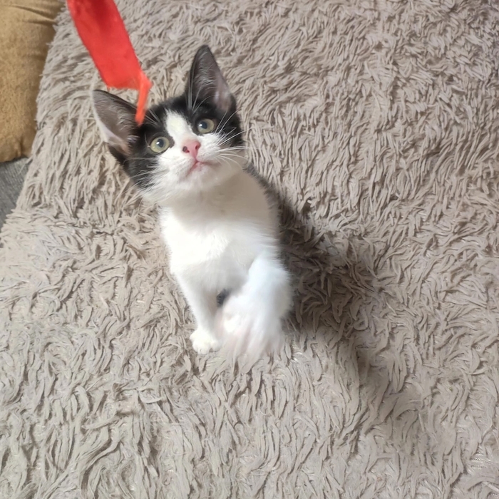 Котёнку 2 месяца, здоровый, весёлый,активный. Лоток на 5+ или нет, даже на 6. А ещё у него крылышки ангела на спинке.