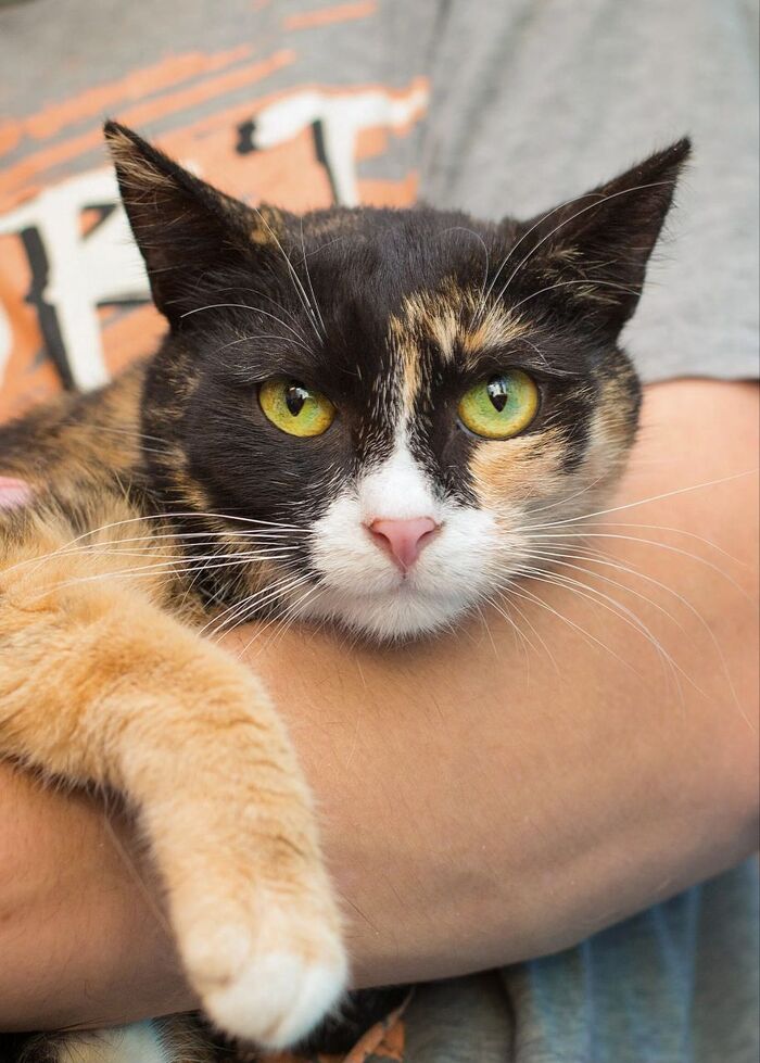 Трехцветная кошечка, очень хорошенькая, аккуратная. Но больше, чем за полтора года, что ведутся поиски дома, никто ни разу не откликнулся на объявления о ней.
