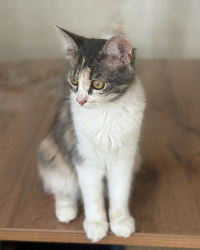 Девочке около 4-х месяцев. Она здорова, обработана, привита, ходит в лоточек и отлично взаимодействует с другими котиками.