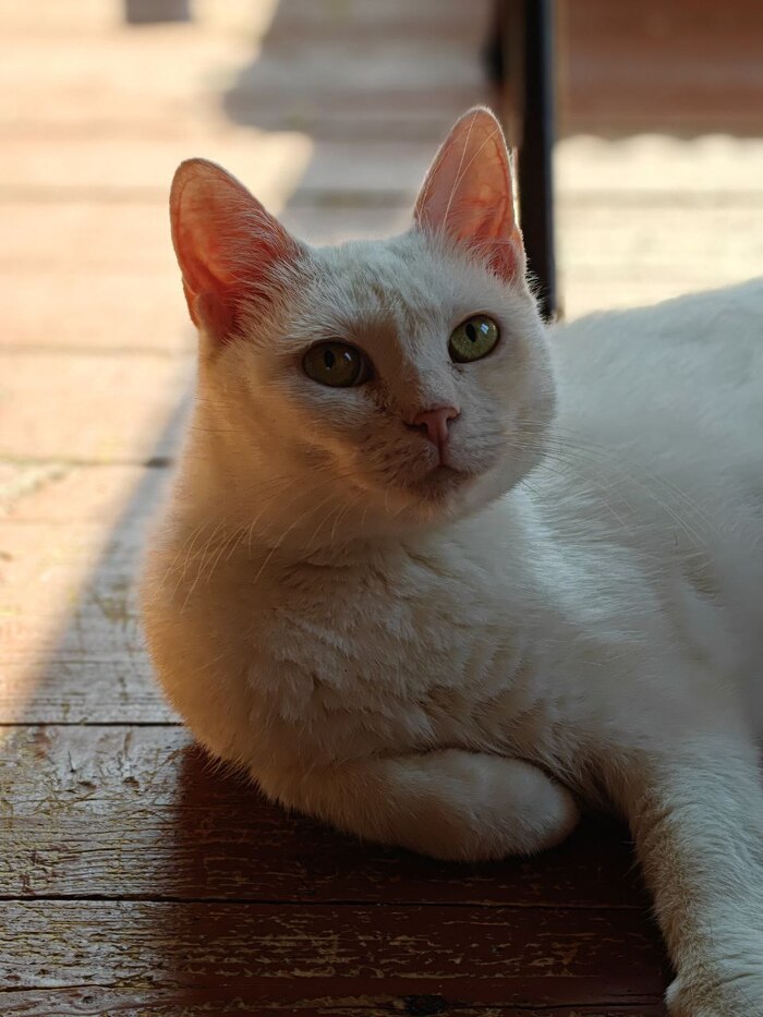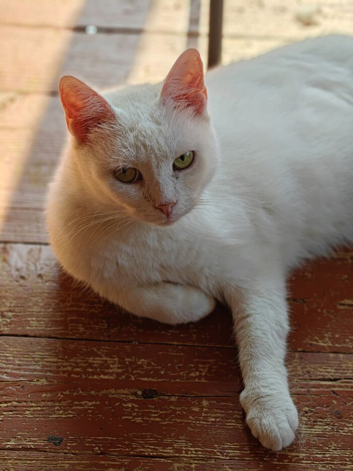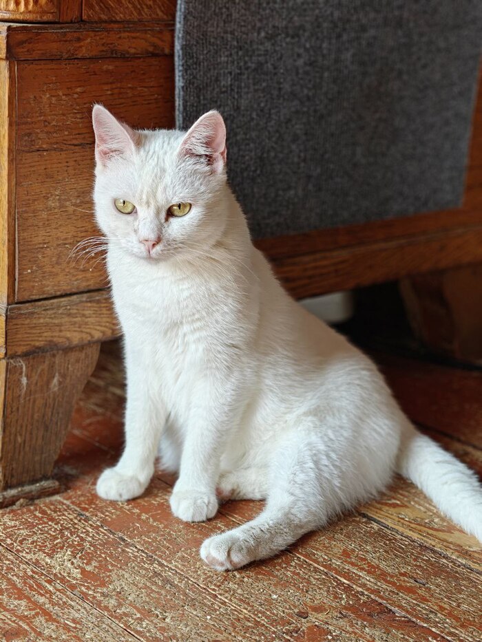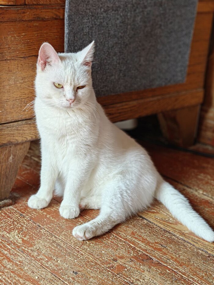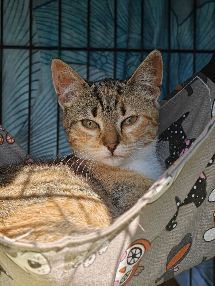 Всем привет от Сырной Полиции. В самом начале я называла ее стрёмной (это такой ветеринарный жаргон), так как она была вялая, ничего не ела и не умывалась. Теперь, судя по ее взгляду, стрёмной она считает уже меня.