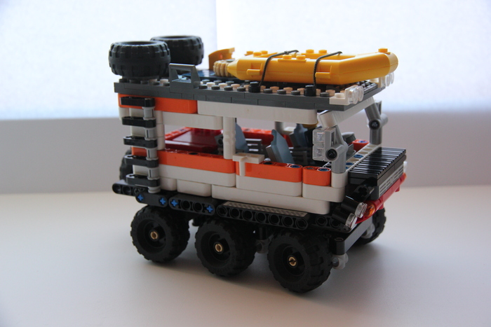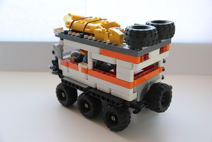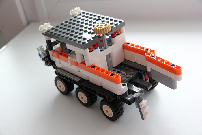 Пару лет назад где-то я решил попробовать свои силы в этом направлении и построить что-то более функциональное. Поскольку руки растут не совсем из нужного места, то модели получились довольно простые, но ребенок играл вполне с удовольствием. Для победы в конкурсах такие не сгодятся, да и для участия скорее всего тоже :) Но... кому-то могут подать идею - что построить своему сыну.