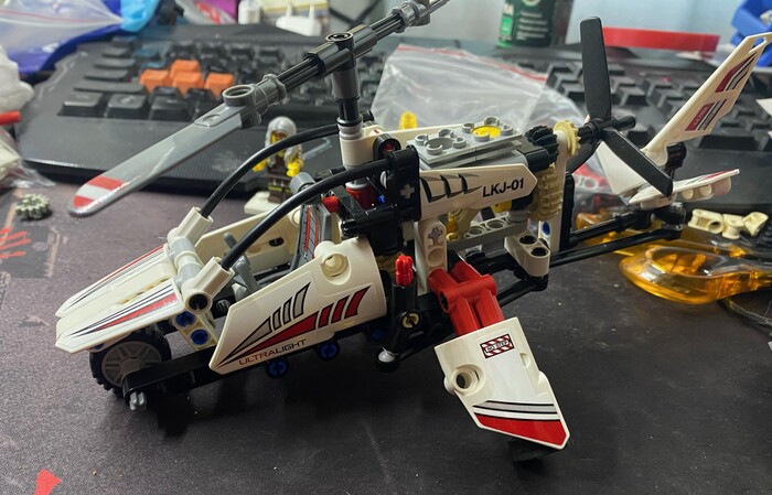 А теперь то, от чего у меня очень сильно полыхнуло пониже спины. Как человек разменивающий четвертый десяток я начинаю привыкать к тому, что раньше трава была зеленее, деревья выше и вообще лучше жилось. И даже наборы систем 90х годов мне нравятся за свою угловатость и то, как из ограниченного количества деталей создавались шедевры. Но это совершенно не касается старого техника! Понятно, что с крупными наборами этот вертолет сравнивать некорректно, но у меня случайно появилась пара более современных наборов небольшого размера, которые удалось без проблем восстановить.