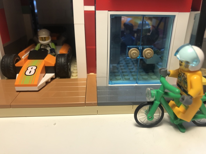 Стандартных функций набора естественно нет, но машика ездит и управляется. Скорость конечно не как у болида Формула-1, но сын доволен. Максимальную скорость дома проверить сложно, до уличных испытаний руки пока не дошли. Модель достаточно большая, наверное из нашей коллекции гоночных лего машин самая большая.