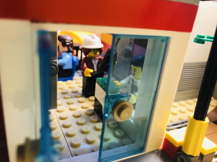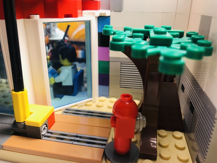 Кстати, пришла прикольная идея, когда не хватало суммы для заказа - собрать мини-стенд, благо лего поощряет творчество и фантазию. У нас здесь информационная панель про акул, на переднем плане выставлен анти-акулий спрей и чуть поодаль на красном столбе висит спасательный круг.