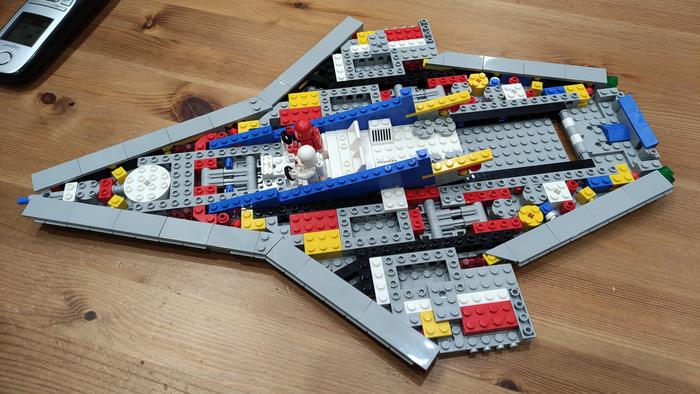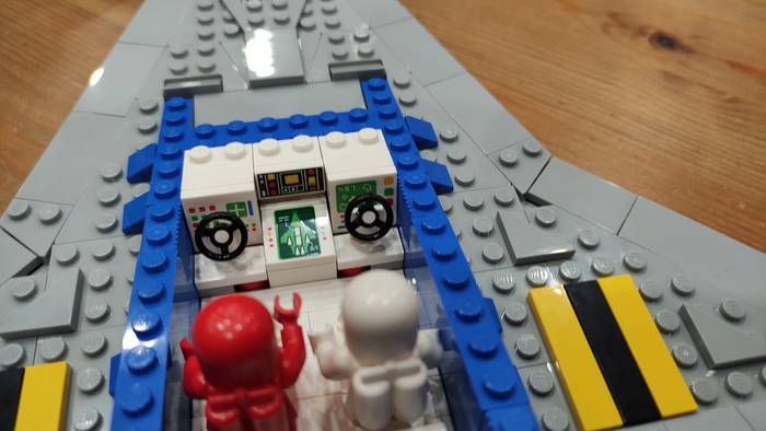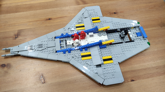 Пятый шаг. Носовая часть готова. Крылья почти завершены. Добавился ещё один астронавт.