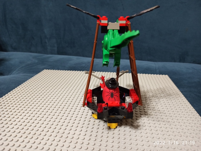 Bat Lord's Catapult набор 6027.Еще одна фракция рыцарей, замка которого у меня не было, поэтому они часто объединялись с Рыцарями Дракона. У них так же есть катапульта, которая кстати уже стреляла неплохо, так как дальность выстрела зависела не от противовеса как выше, а от силы нажатия пальца.
