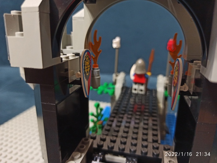 Royal Drawbridge набор 6078. Этот набор я тоже купил в прошлом году, хотя он у меня был. Мост ловушка. Что интересно, тут три Рыцаря Короля и всадник Чёрных Рыцарей, хотя выглядит он так же, как рыцарь Дракона. На фото не видно, но у данного рыцаря щит с синим драконом, а это отличительная черта Чёрных Рыцарей, у Рыцарей Дракона щит с зеленым драконом. Но, цвета на копье у него Рыцарей Драконов, так как цвета Чёрных Рыцарей красно-синие. Таких рыцарей у меня два, я наверное не доложил рыцаря когда продавал этот набор и у обоих щиты с синим драконом, видать что-то перепутали в Лего. Хотя я всегда считал, что это Чёрный Рыцарь.