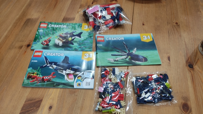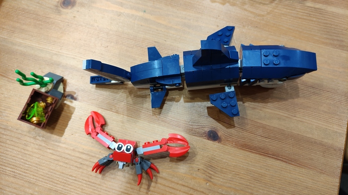 На сайте лего можно скачать ещё одну инструкцию. Как я полагаю это кашалот и маленький кальмар. По размерам он выходит меньше акулы и деталей тоже много осталось.