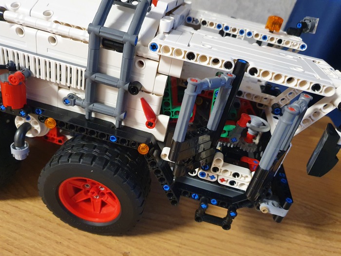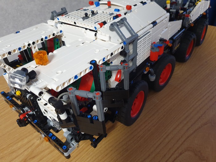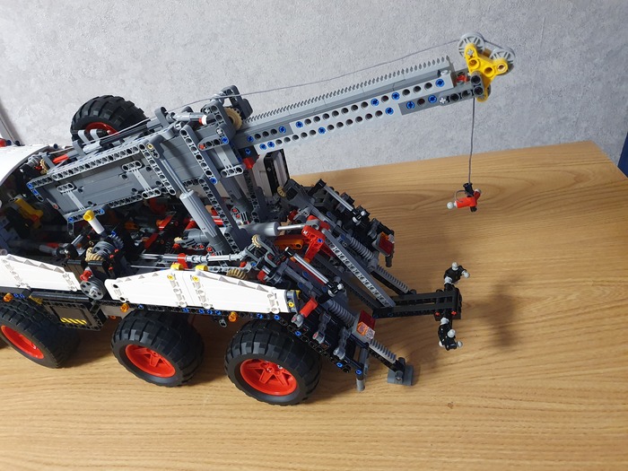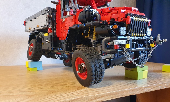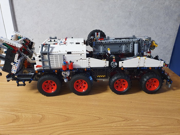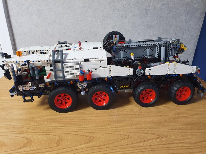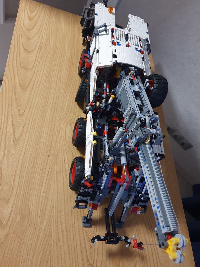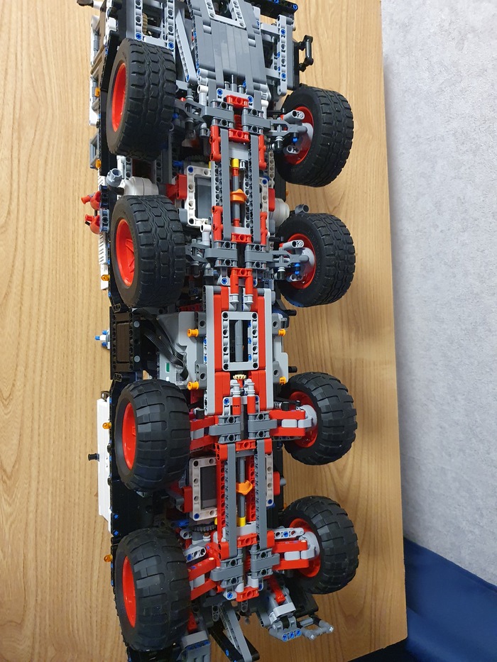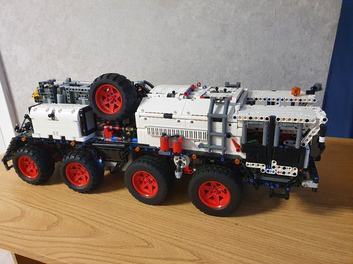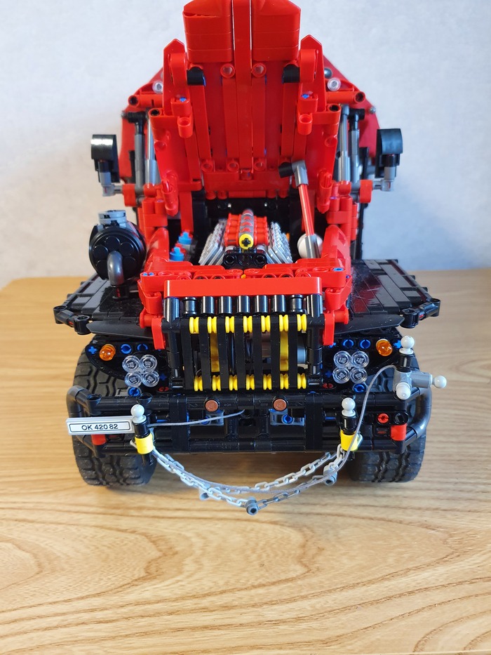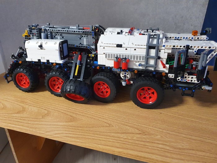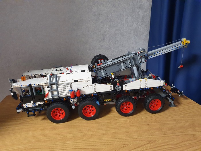 Добрый день дорогие фанаты лего! Это мой первый пост! Являюсь недавним лего самодельщиком из Латвии, хотя с лего знаком уже давно, серьёзные самоделки начал собирать недавно. Ну это в общем в кратце обо мне. А теперь хочу представить на Ваше внимание, и на Ваш суд, наверное, мою гордость, самую серьёзную из пока мною собранных моделей. Это МАЗ 543 8×8 КЭТ( колёсный эвакуационный тягач).Здесь 4492 детали, размер: 70.0x27.8x29.9 cm. Буду честен, вдохновлялся от игры Spintires! Из особенностей: независимая подвеска каждого колеса, обе кабины поднимаются, в обоих кабинах работает руль, ящик для инструментов, вспомогательная лебёдка, имеет рабочий двигатель v12, и от себя я добавил трёх цилиндровую рабочую ВСУ. и Реализованы все основные функции: