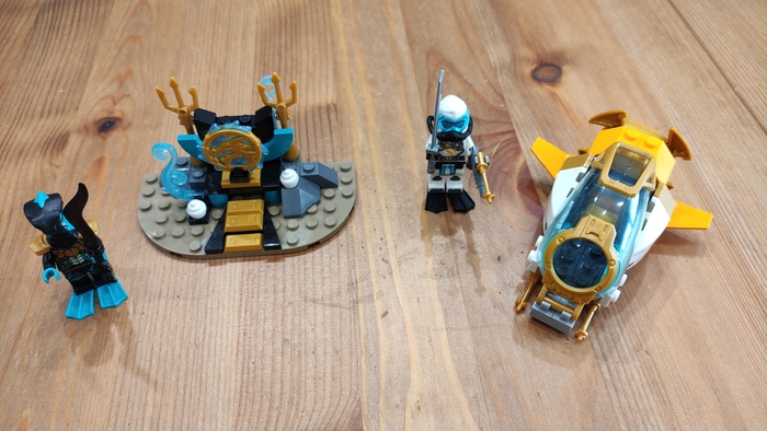 На первом шаге собираем батискаф и небольшую постройку. Фигурка Зейна оснащена ластами и аквалангом, плюс получаем фигурку прислужника главного злодея.