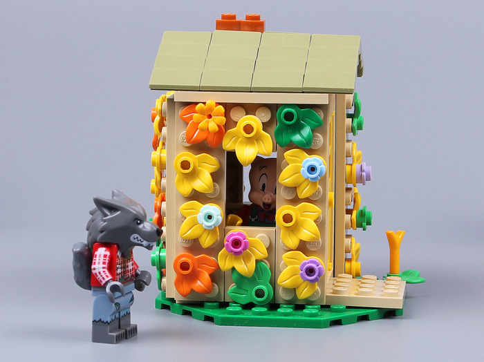 И едва они успели укрыться внутри домика из соломы, как сразу же подбежал волк.