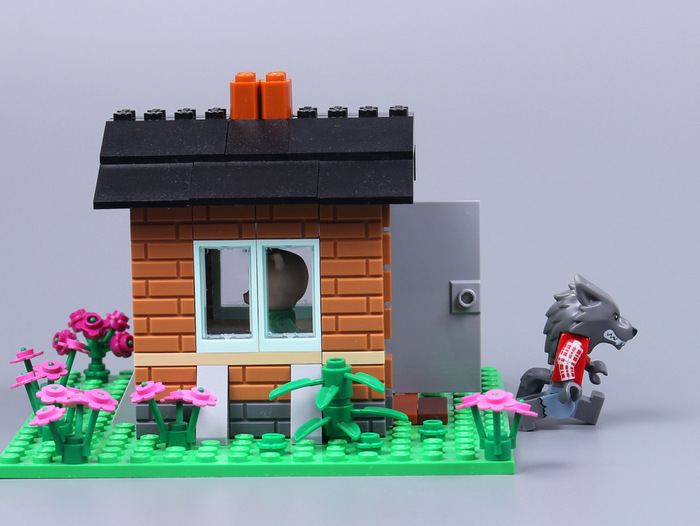 Волк пытался как в прошлый раз подуть на домик, но дом даже не шелохнулся.