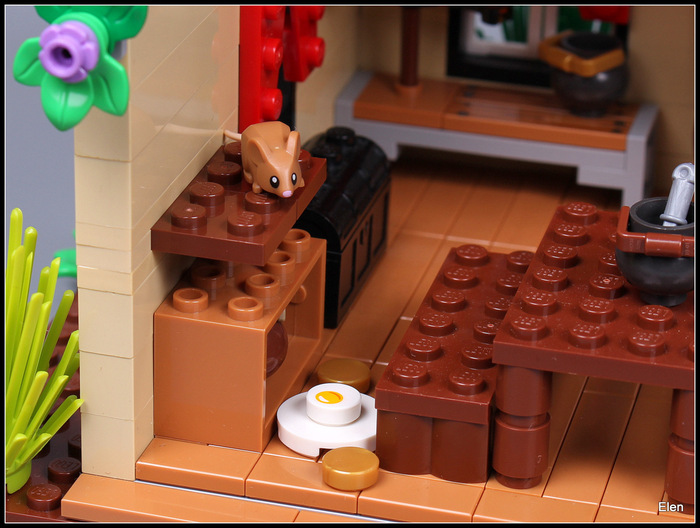 Очень атмосферно выполнен сам домик, подобраны цвета для дощечек, крыши, везде полно мелких деталей листвы и цветов!