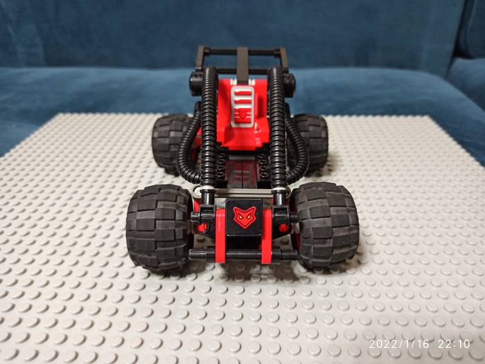 Вместе с трактором был подарен и этот набор. Набор 8808 F1 Racer 1994 года. Недавно кстати компания Лего презентовала набор Формула 1, можно сравнить. Тут уже все сложнее, играть с болидом неудобно из-за его низкой посадки, но уже можно было кое-как посадить пилота за руль. Передняя деталь принтованная, а вот сзади на спойлере наклейки. Со временем был утерян руль, который я недавно докупил. Модель ОЧЕНЬ простая, поворачиваются только колеса с помощью руля. Альтернативная модель багги.