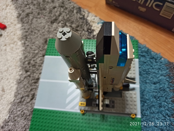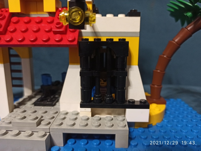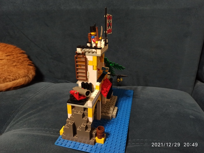 Собрал половину, выяснил, что одна деталь сломана и как обычно деталь редкая, заказать можно на аукционах, плюнул и пошел заклеил клеем, благо кусочек отломанной детали нашелся в коробке. Прошло время и я уже думал вернуться к сборке, но начал думать, а куда сборку поставить, ведь сам набор немаленький, плюс рядом с пиратским кораблем как-то не очень смотреться будет, поэтому я отложил то что собрал и решил начать собирать другой набор. Вообще проблема куда поставить всегда стоит, сборки собирают пыль, если находятся не в шкафу (условно в ёмкости). Кошка вечно норовит все спихнуть с полки, маленький ребенок хочет играть, но он ещё слишком маленький, но он этого не понимает. Вариант наверное только один, собрать, порадоваться, разобрать и положить в коробку с подписью до лучших времён или открыть когда моему ребенку стукнет условно 7+ лет. Хотя с возрастом я может и переборщил.