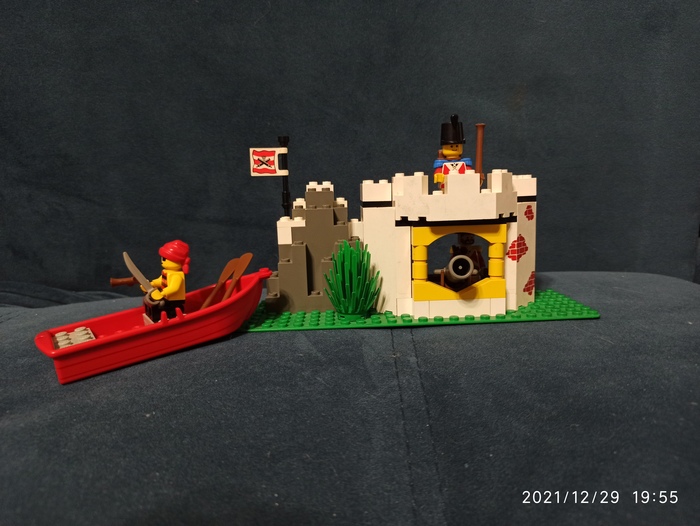 В общем собрал я два набора из пиратской тематики. Набор 1993 года 6266, Cannon Cove (Бастион Чёрных Рифов), не знаю почему русский перевод такой.